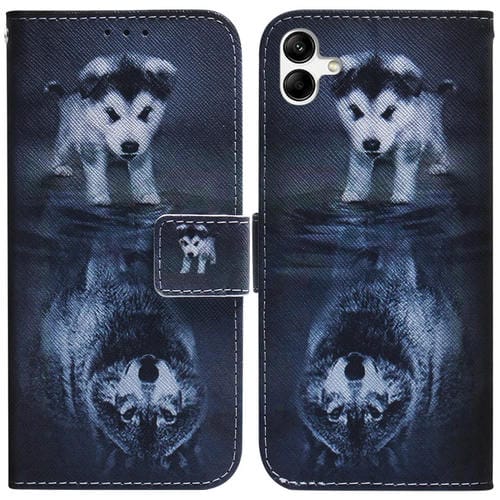 Estuche para Teléfono Samsung Galaxy A04/M13 5G Cuero Tapa Horizontal Dibujo Lobo y Perro