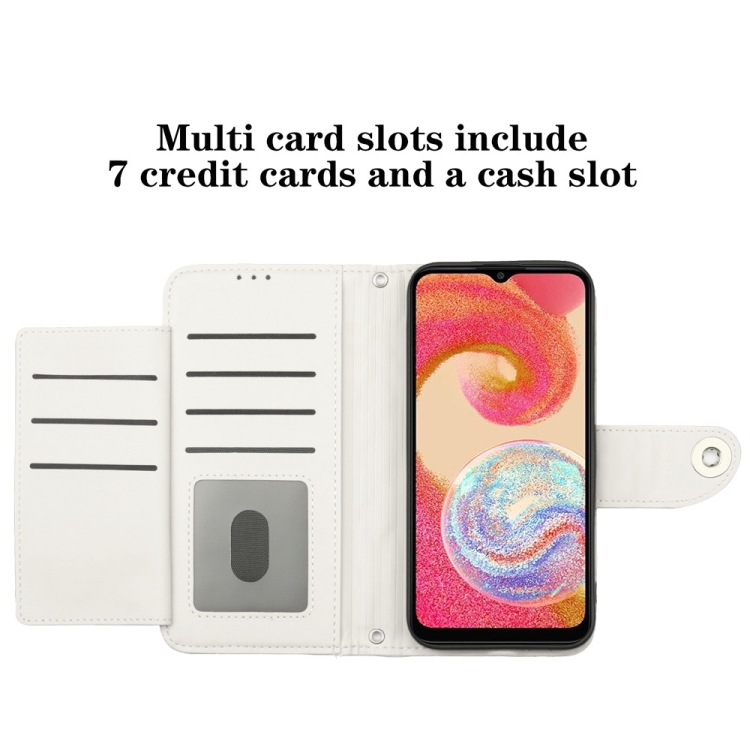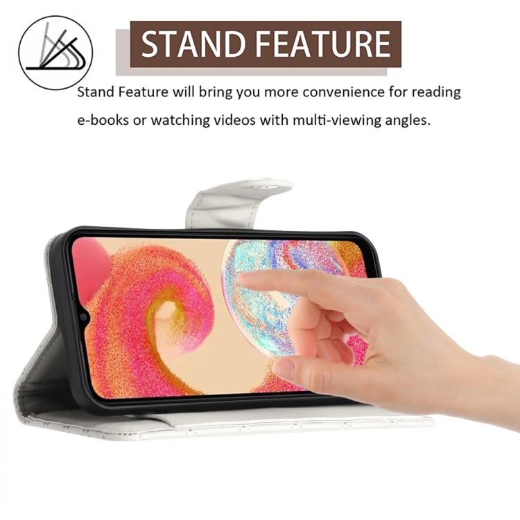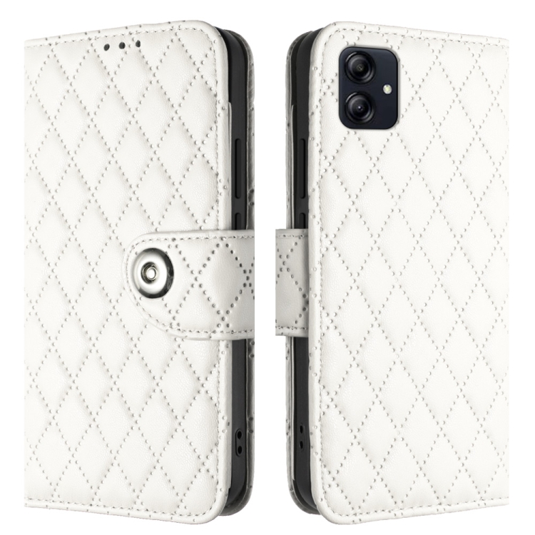 Funda de Cuero para Samsung Galaxy A04E con Tapa Textura Rómbica y Cordón (Blanco)
