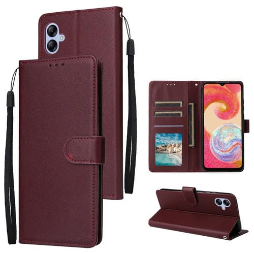 Funda de Cuero Samsung Galaxy A04E Multifuncional con 3 Ranuras para Tarjetas (Rojo Vino)