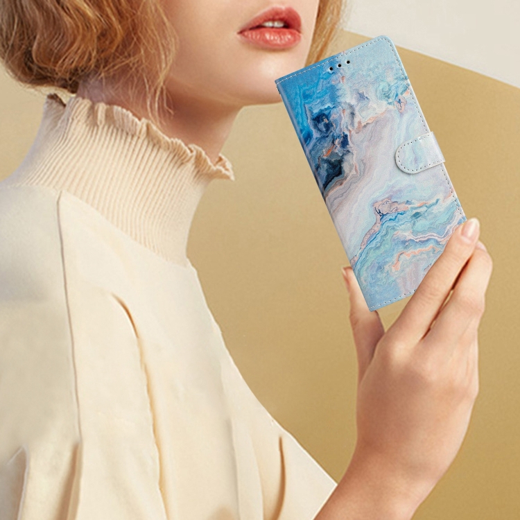 Funda de Cuero para Samsung Galaxy A05 con Dibujo Coloreado (Mármol Azul)