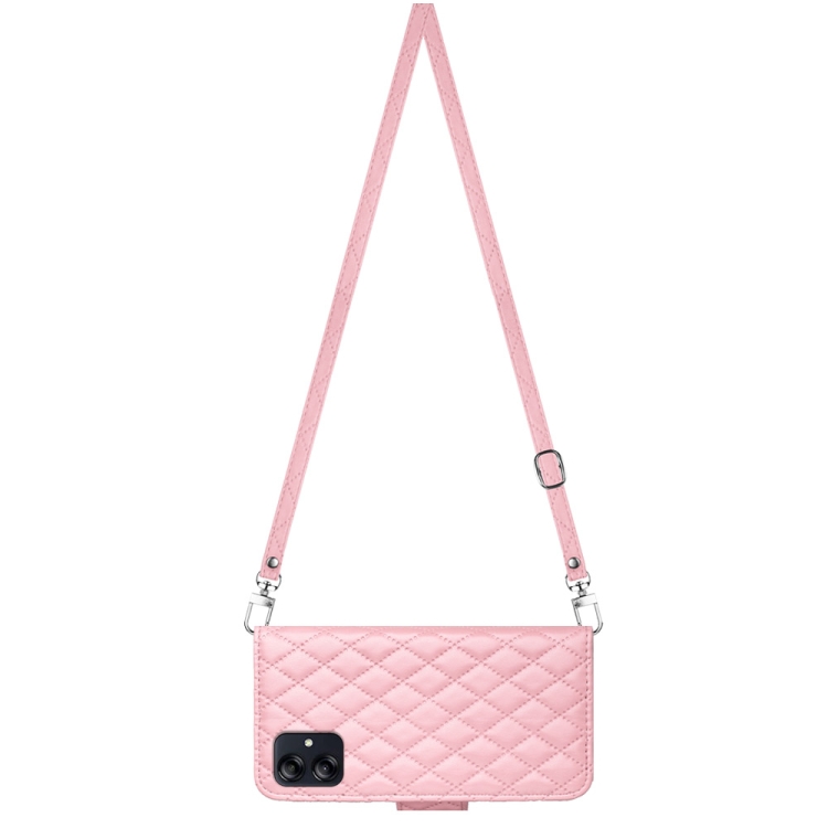 Funda de Cuero para Samsung Galaxy A05 con Tapa Textura Rómbica y Cordón Largo (Rosa)