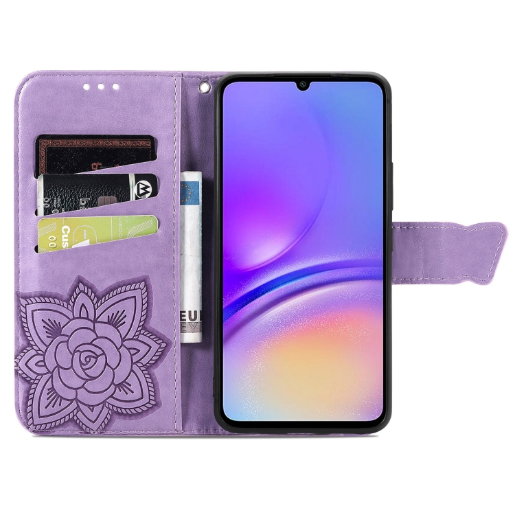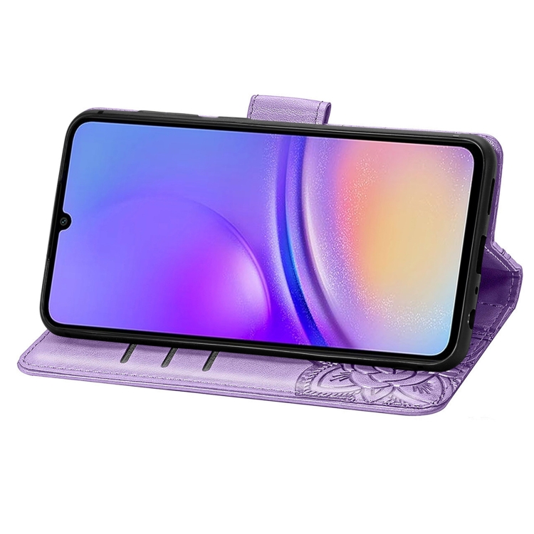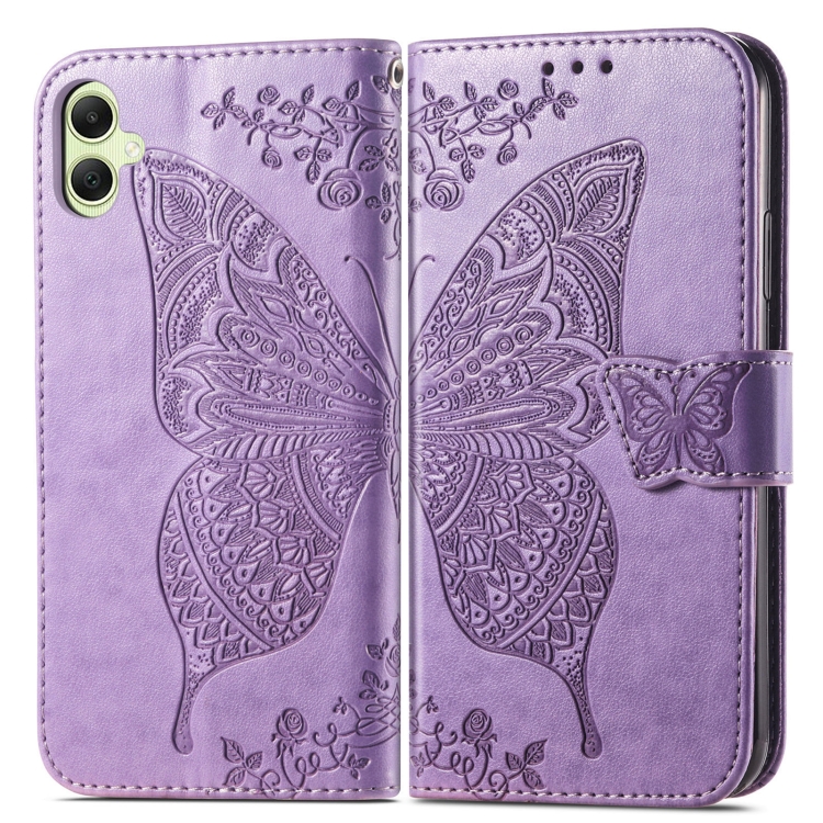 Funda para Teléfono Samsung Galaxy A05 Cuero Relieve Flor de Amor y Mariposa (Púrpura Claro)