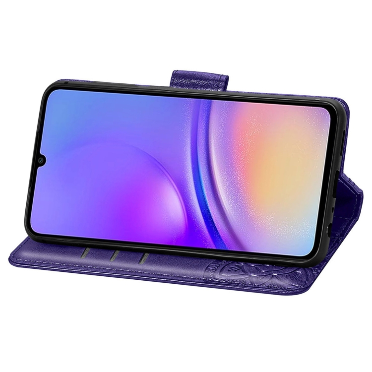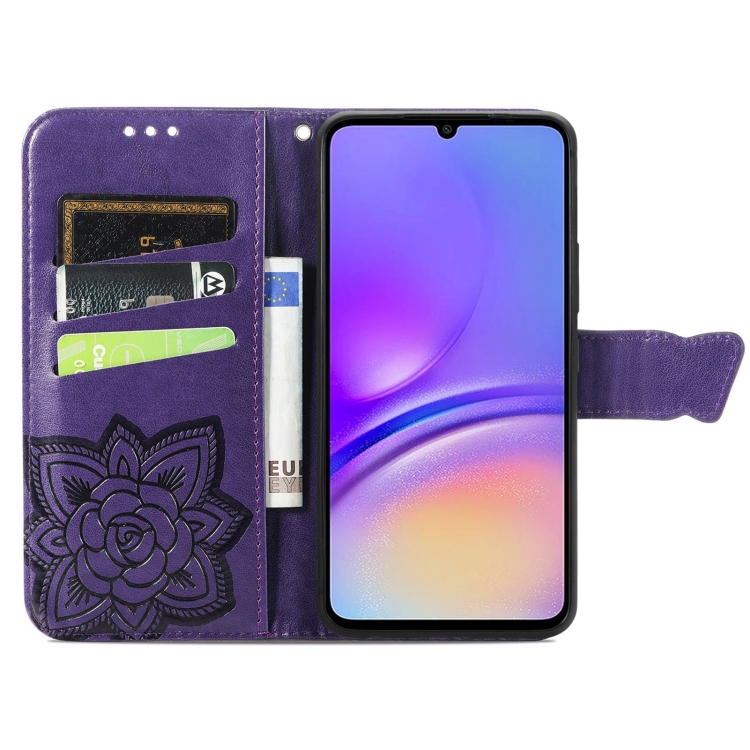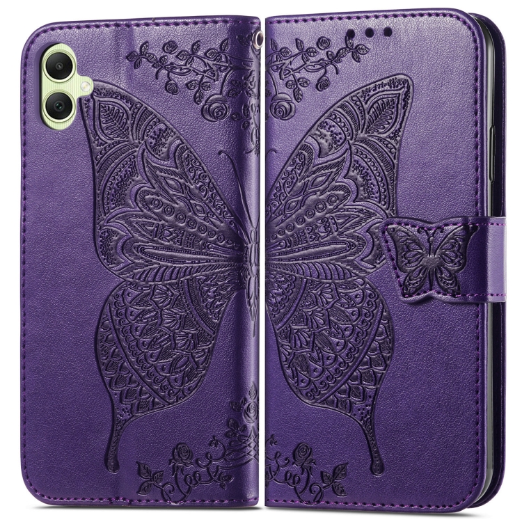 Funda para Teléfono Samsung Galaxy A05 Cuero Relieve Flor Amor y Mariposa (Púrpura Oscuro)
