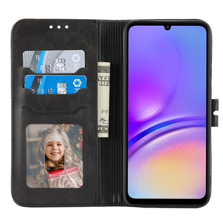 Funda para Teléfono Samsung Galaxy A05 Cuero Tapa Patrón Gato Feliz (Negro)