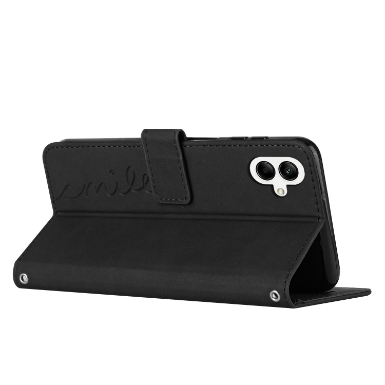 Funda para Teléfono Samsung Galaxy A05 Skin Feel Heart Cuero En Relieve con Cordón Largo (Negro)