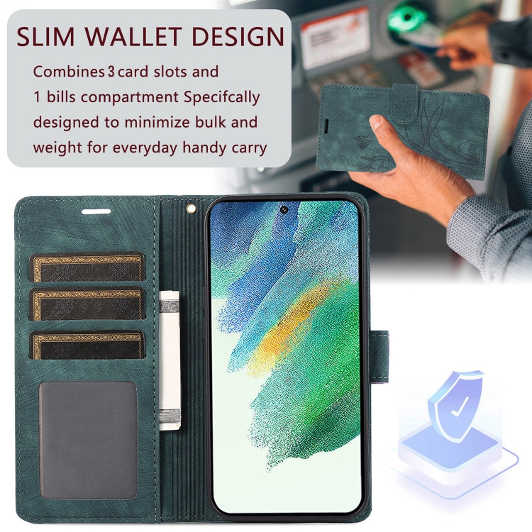 Funda para Teléfono Samsung Galaxy A05S 4G Cuero con Relieve Mariposa Orquídea (Verde)