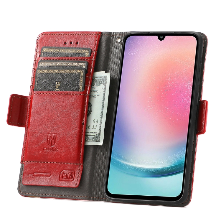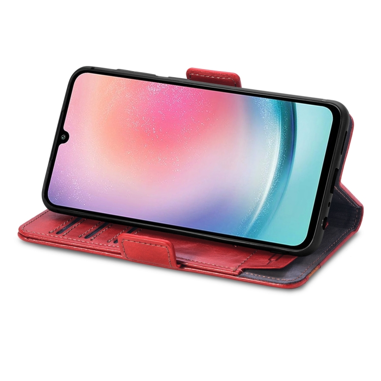 Funda para Teléfono Caseneo Samsung Galaxy A05S Splicing Cuero Hebilla Magnética Dual (Rojo)