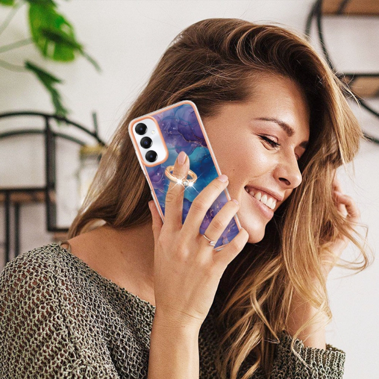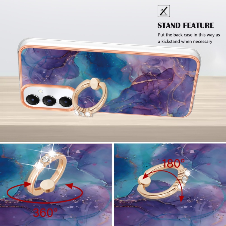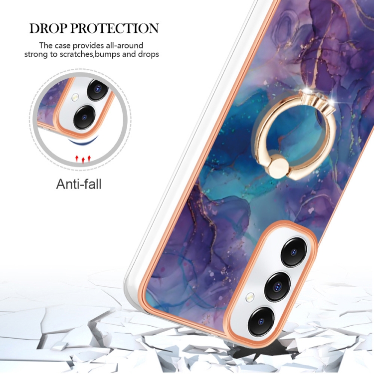 Estuche para Teléfono Samsung Galaxy A05S Imd Doble Cara Mármol Galvanizado con Anillo (Púrpura)