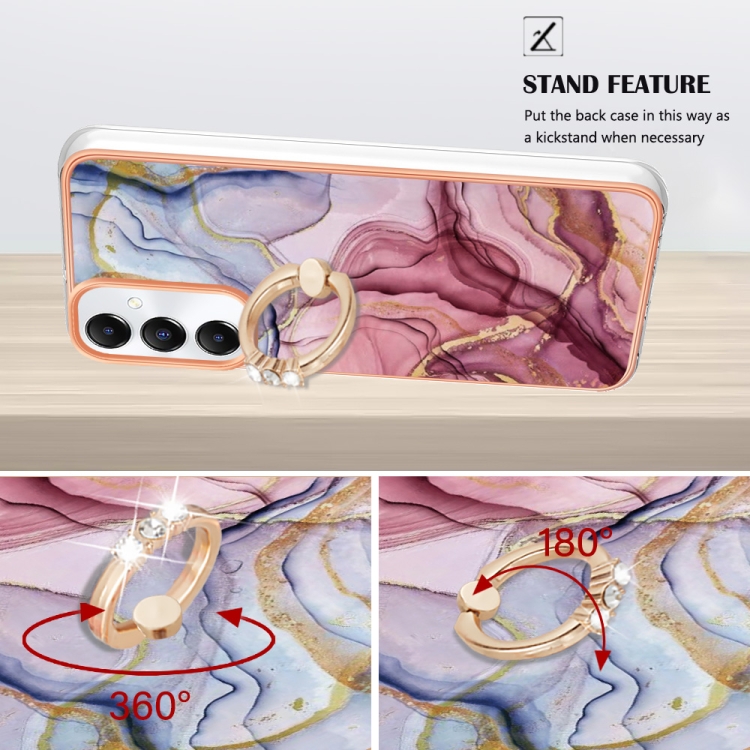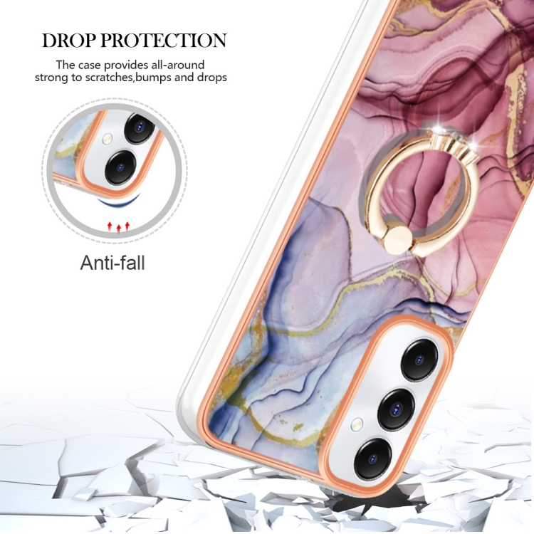 Estuche para teléfono Samsung Galaxy A05S Imd doble cara mármol galvanizado con anillo (Rose Red)