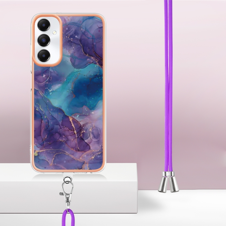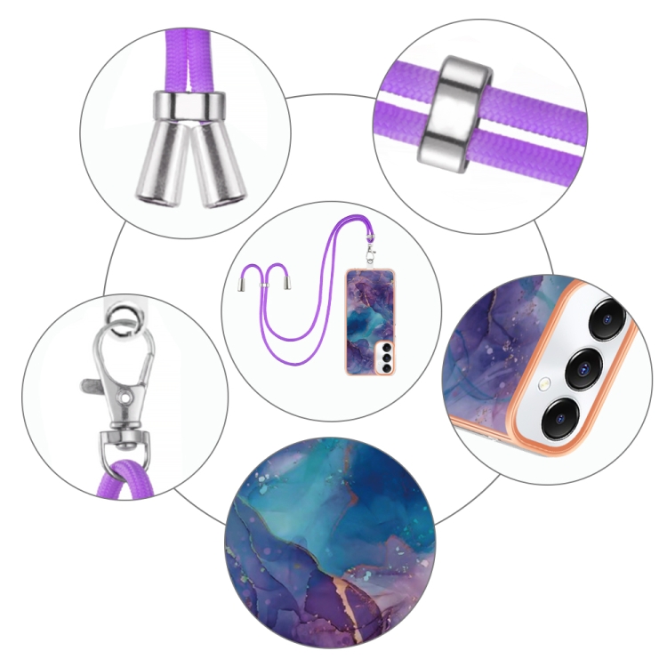 Estuche para Teléfono Samsung Galaxy A05S Imd Doble Cara Mármol Galvanizado con Cordón (Púrpura)