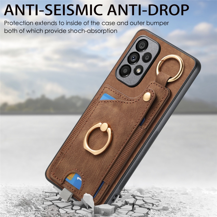 Funda para Teléfono Samsung Galaxy A05S con Bolsa para Tarjeta y Anillo con Lazo para Colgar (Marrón)