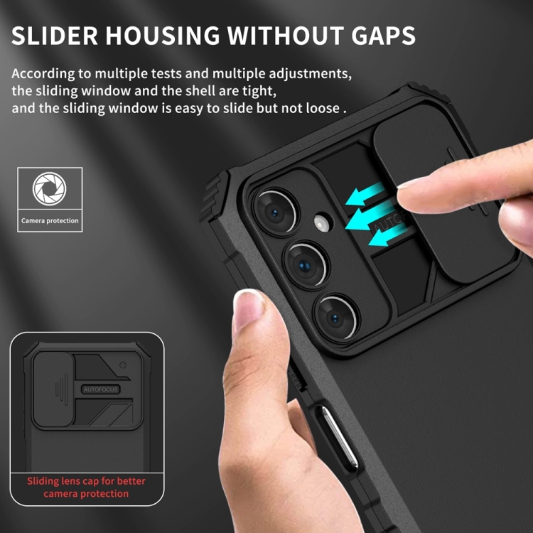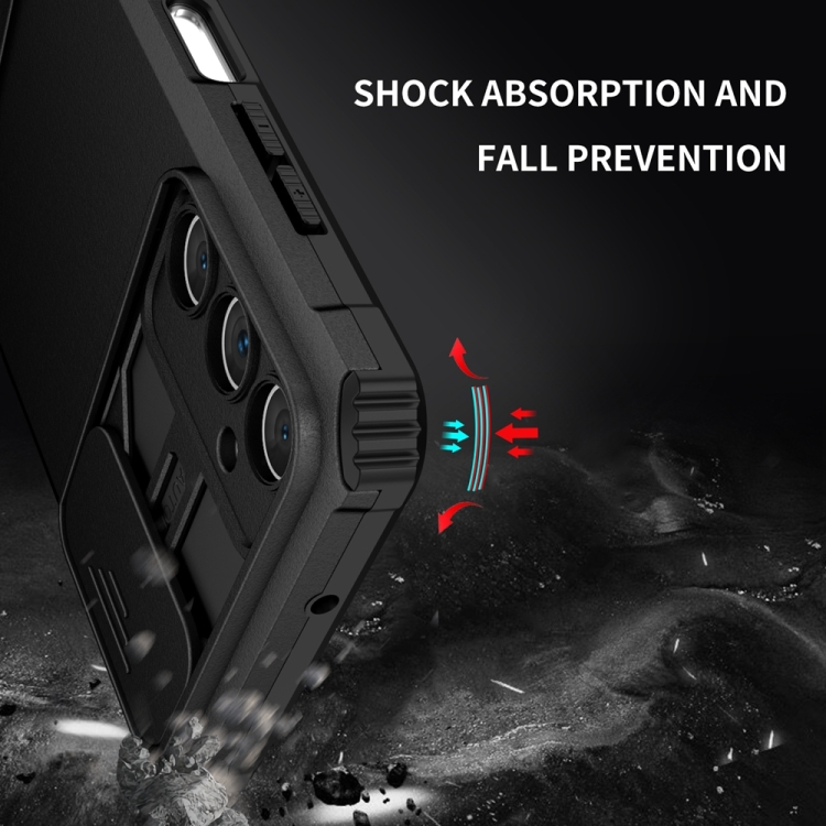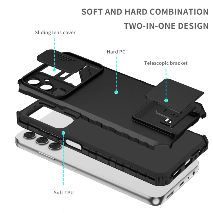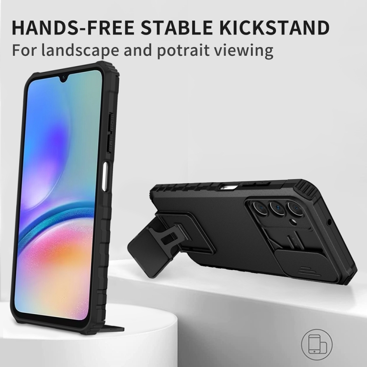 Funda para Teléfono Samsung Galaxy A05S con Soporte Estereoscópico y Pantalla de Leva Deslizante (Negro)