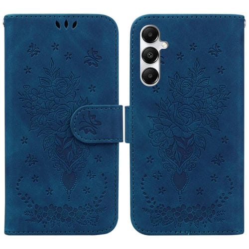 Funda para Teléfono Samsung Galaxy A05S Cuero con Relieve de Mariposa y Rosa (Azul)