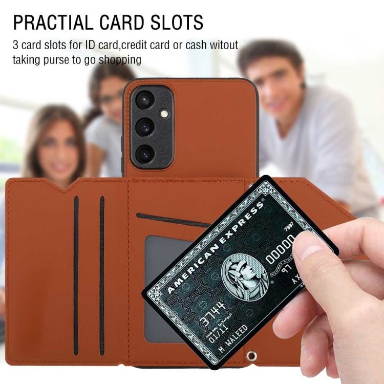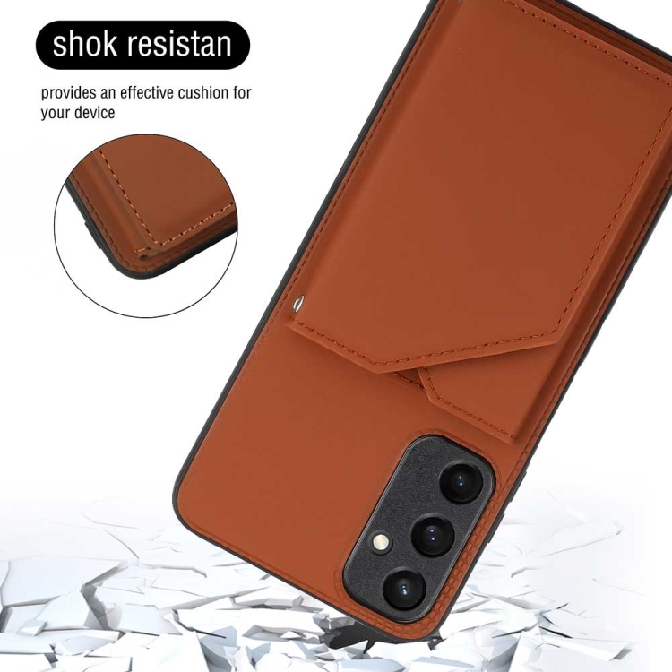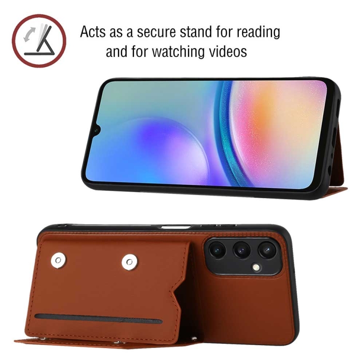 Funda para teléfono Samsung Galaxy A05S Skin Feel Pu + TPU con ranuras para tarjetas para PC (Marrón)
