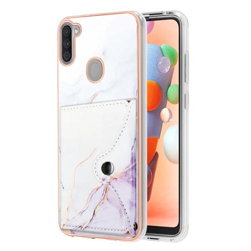 Estuche para Teléfono Samsung Galaxy A11 M11 con Ranura para Tarjeta Imd Patrón Mármol (Blanco y Morado)