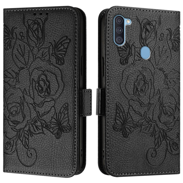 Estuche de Teléfono Samsung Galaxy A11 Versión UE Cuero Antirrobo Rfid Relieve (Negro)