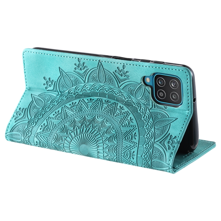 Estuche para Teléfono Samsung Galaxy A12 5G M12 F12 Cuero Magnético Relieve Tótem (Verde)