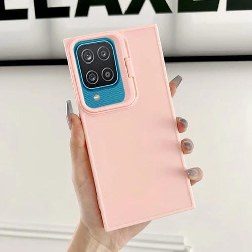 Estuche para Teléfono Samsung Galaxy A12 con Soporte y Marco de Lente a Prueba de Golpes (Rosa)
