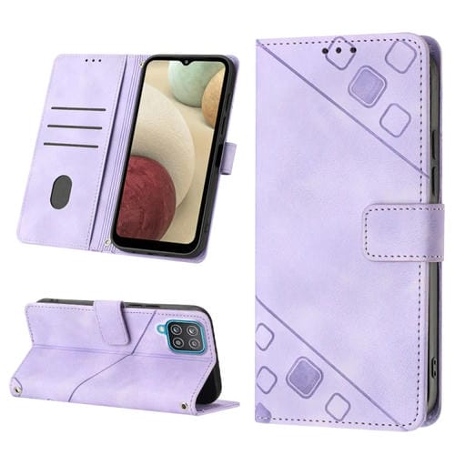 Estuche para Teléfono Samsung Galaxy A12 M12 Cuero En Relieve Tacto de Piel (Púrpura Claro)