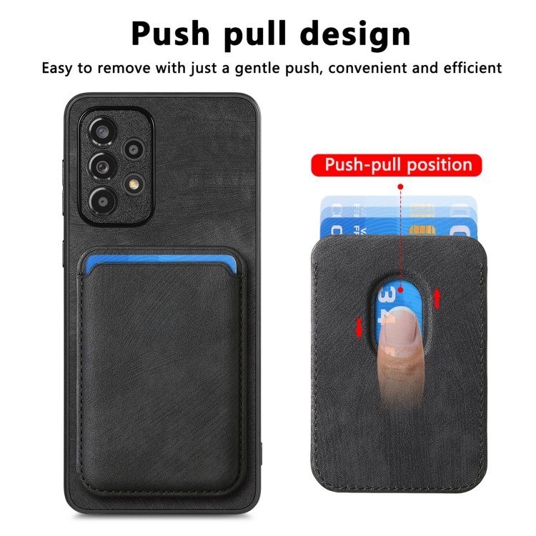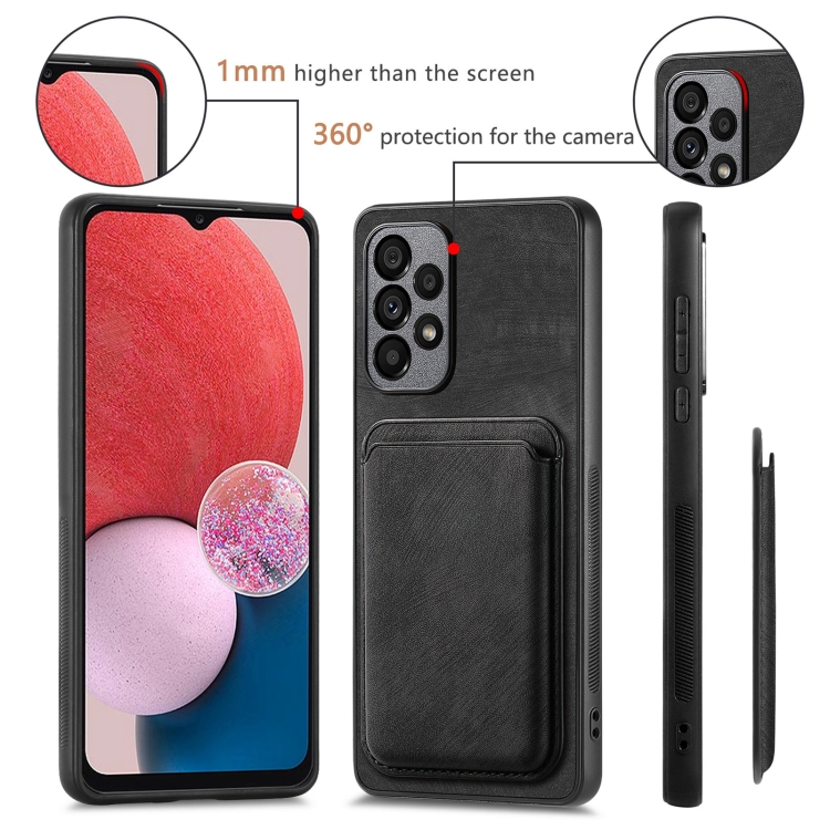 Funda de Teléfono Samsung Galaxy A13 4G Magnética con Bolsa de Tarjeta de Cuero Retro (Negro)