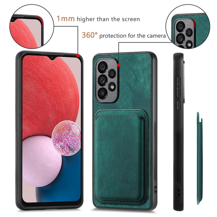 Funda de Teléfono Samsung Galaxy A13 4G Magnética con Bolsa de Tarjeta de Cuero Retro (Verde)