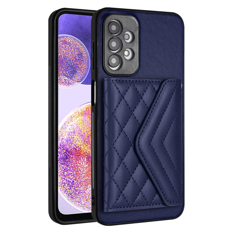 Funda para Teléfono Samsung Galaxy A13 4G con Rfid, Bolsa para Tarjetas, Textura Rómbica y Cordón Largo (Púrpura Oscuro)