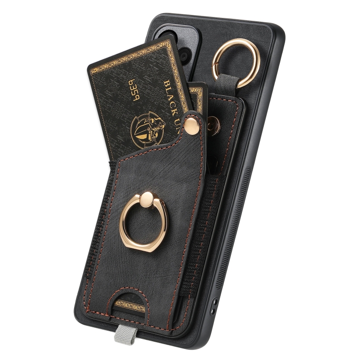 Funda para Teléfono Samsung Galaxy A14 4G 5G con Bolsa para Tarjeta Anillo y Lazo (Negro)
