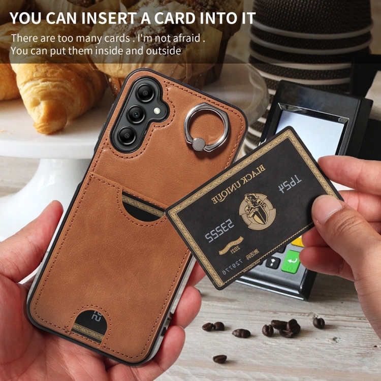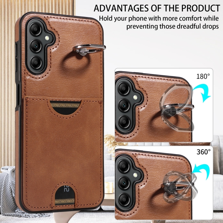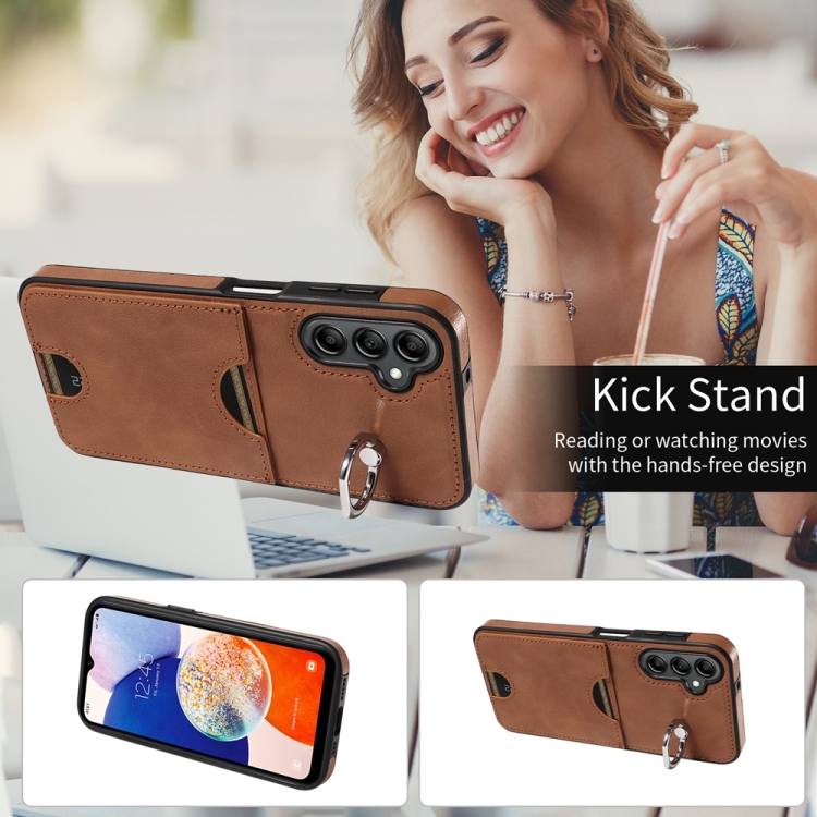 Funda para Teléfono Samsung Galaxy A14 4G 5G con Soporte Anillo y Ranura Tarjeta (Marrón)