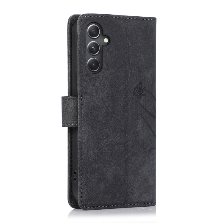 Funda para teléfono Samsung Galaxy A14 4G 5G cuero relieve mariposa orquídea (Negro)