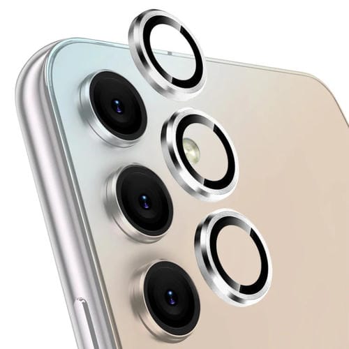 Protector de Lente de Cámara Northjo para Samsung Galaxy A14 y A34 Vidrio Templado Película Anillo de Metal (Plata)