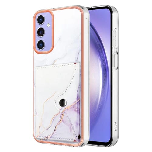 Estuche para Teléfono Samsung Galaxy A15 5G con Ranura para Tarjeta Imd y Patrón de Mármol (Blanco y Morado)