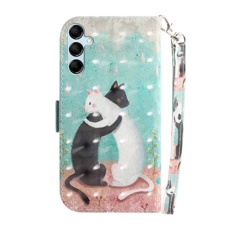 Funda de Cuero para Samsung Galaxy A15 con Tapa Horizontal y Diseño 3D (Gato Blanco y Negro)