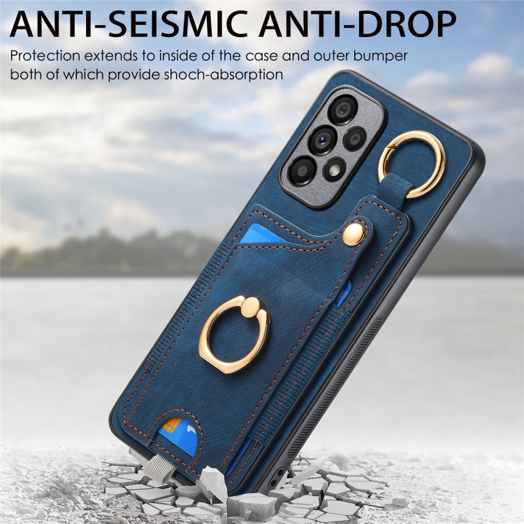 Funda para Teléfono Samsung Galaxy A15 con Bolsa para Tarjeta Anillo y Lazo para Colgar (Azul)