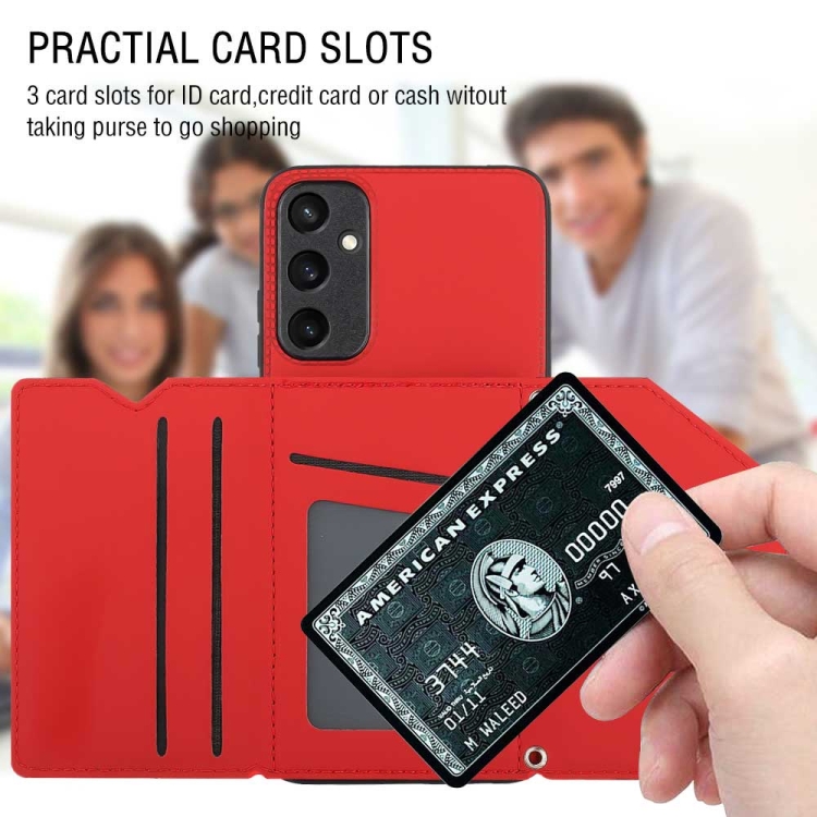Funda para Teléfono Samsung Galaxy A15 Skin Feel PU TPU con Ranuras para Tarjetas PC (Rojo)