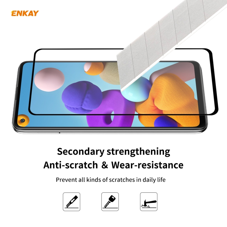Película de vidrio templado Enkay Hat-Prince para Samsung Galaxy A21S Full Glue 0.26mm 9H 2.5D (2 piezas)