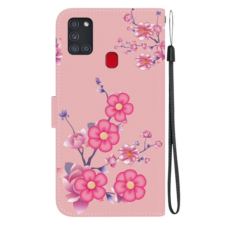 Funda para Teléfono Samsung Galaxy A21S Cuero Dibujo Coloreado Textura de Cristal (Flores de Cerezo)