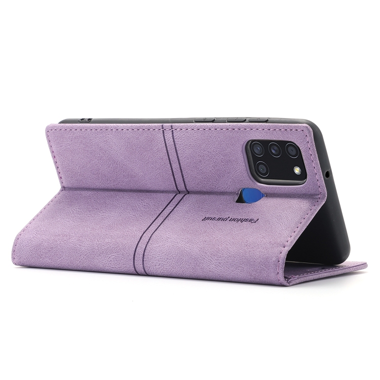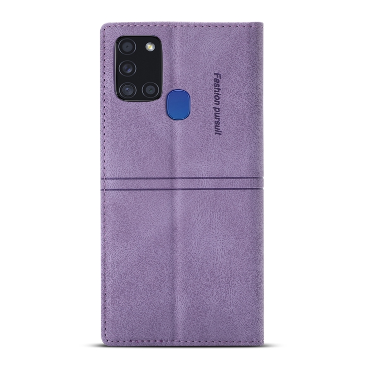 Funda para Samsung Galaxy A21S Flip Pu Cuero Magnético Soporte Ranura Tarjeta Billetera (Púrpura)