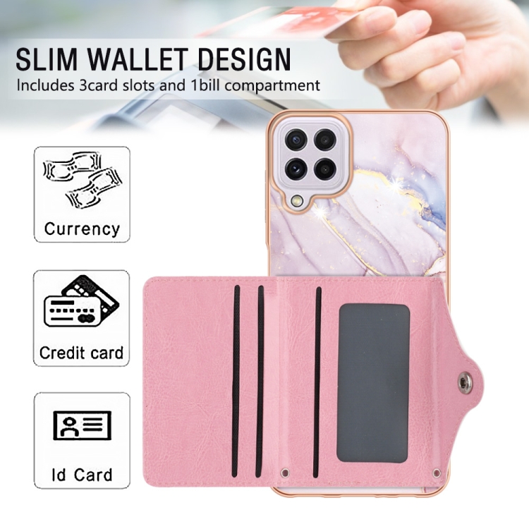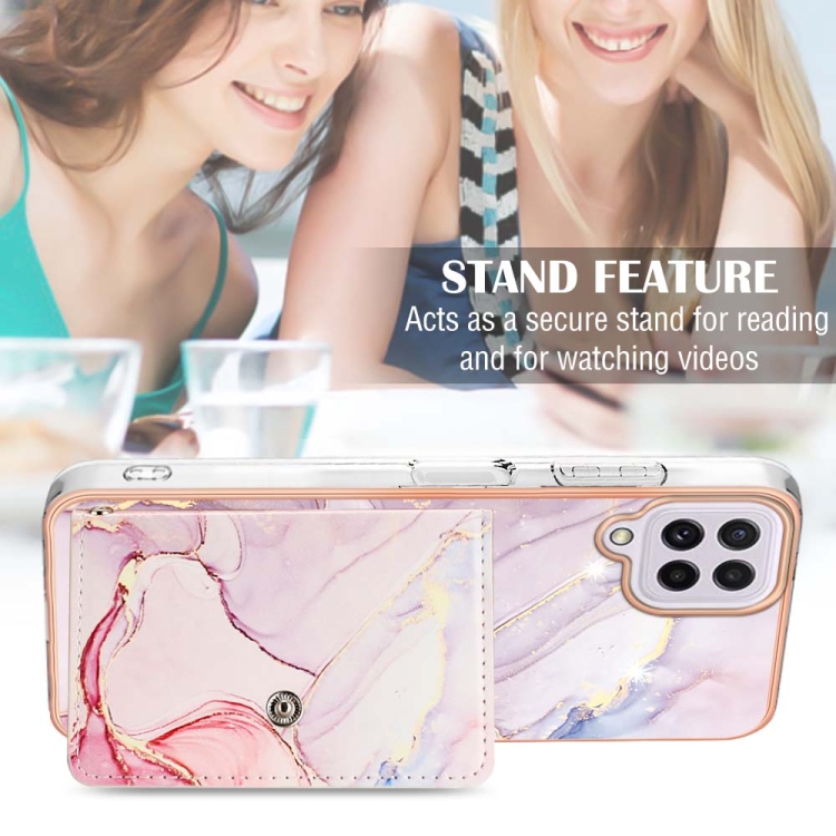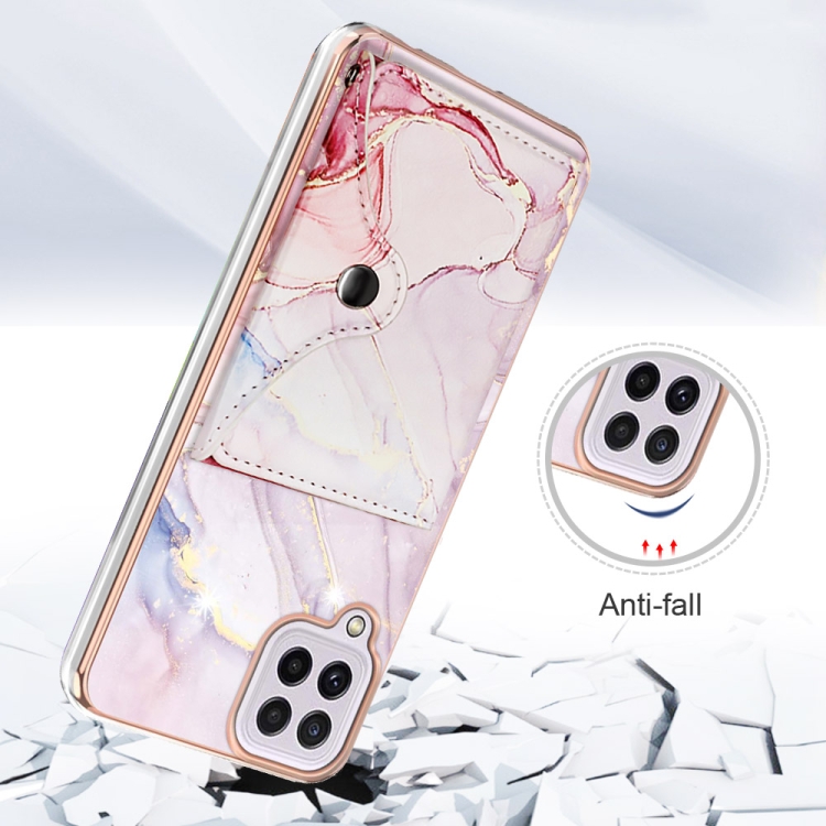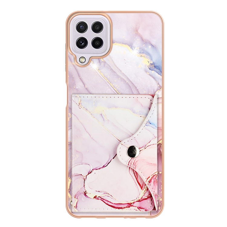 Estuche para Teléfono Samsung Galaxy A22 4G Versión UE con Ranura para Tarjeta Imd Patrón Mármol (Oro Rosa)