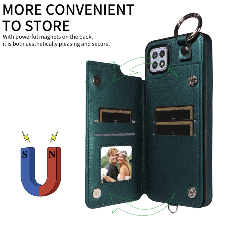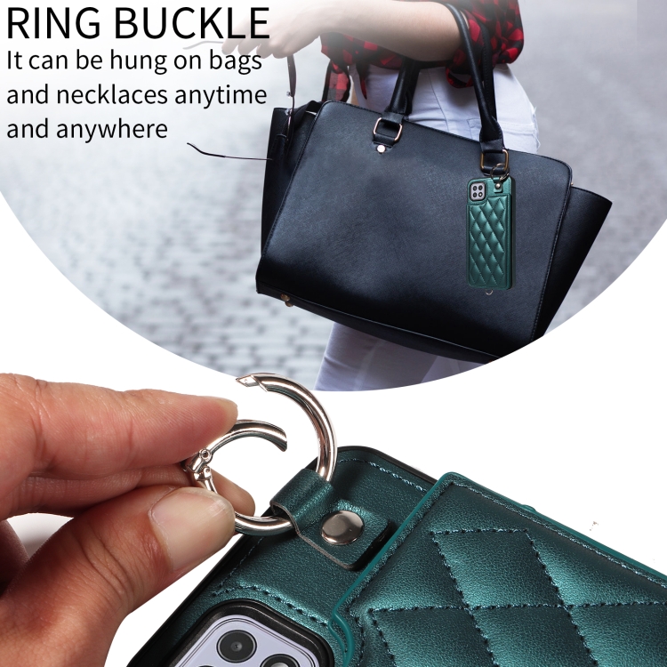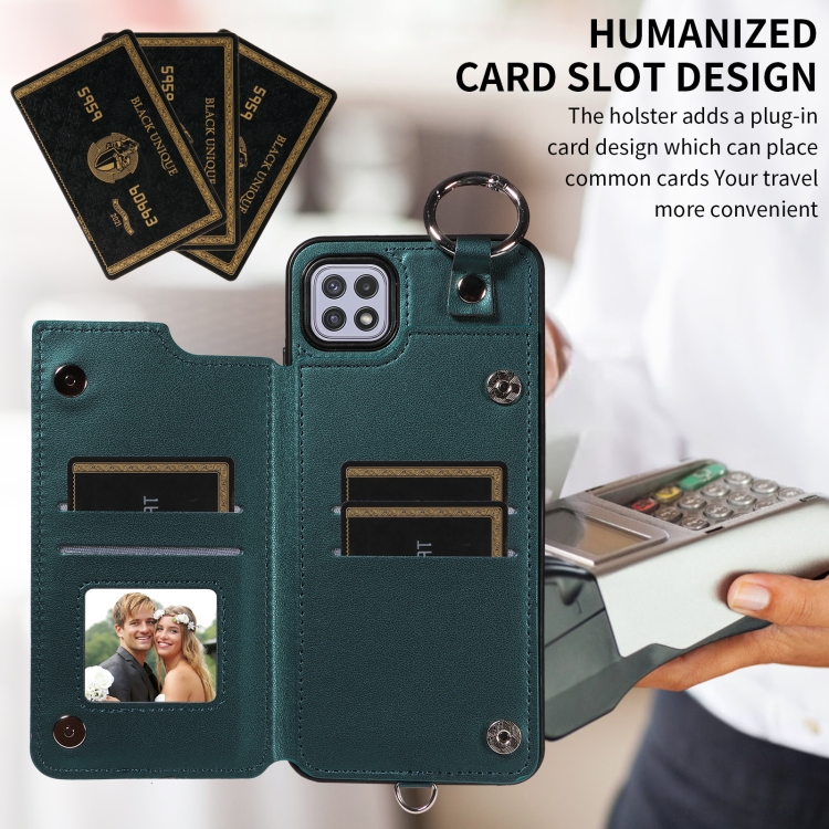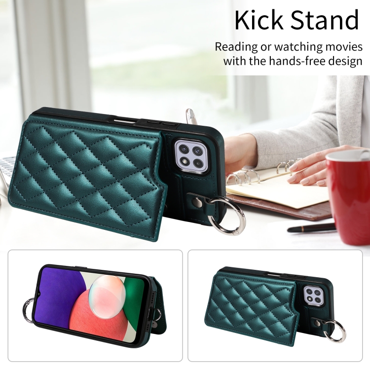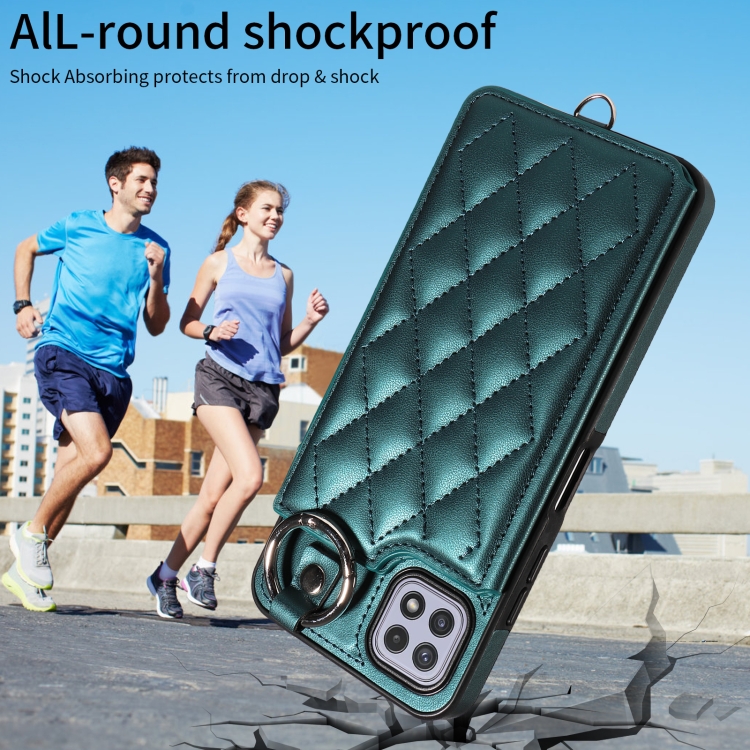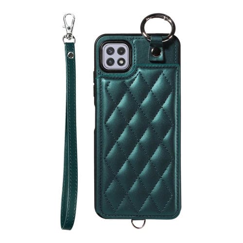 Estuche para Teléfono Samsung Galaxy A22 5G con Bolsa para Tarjeta Textura Rómbica y Cordón Corto (Verde)