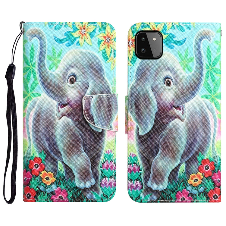 Para Samsung Galaxy A22 5G Estuche para teléfono de cuero con dibujo coloreado (elefante)