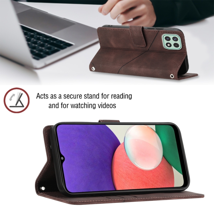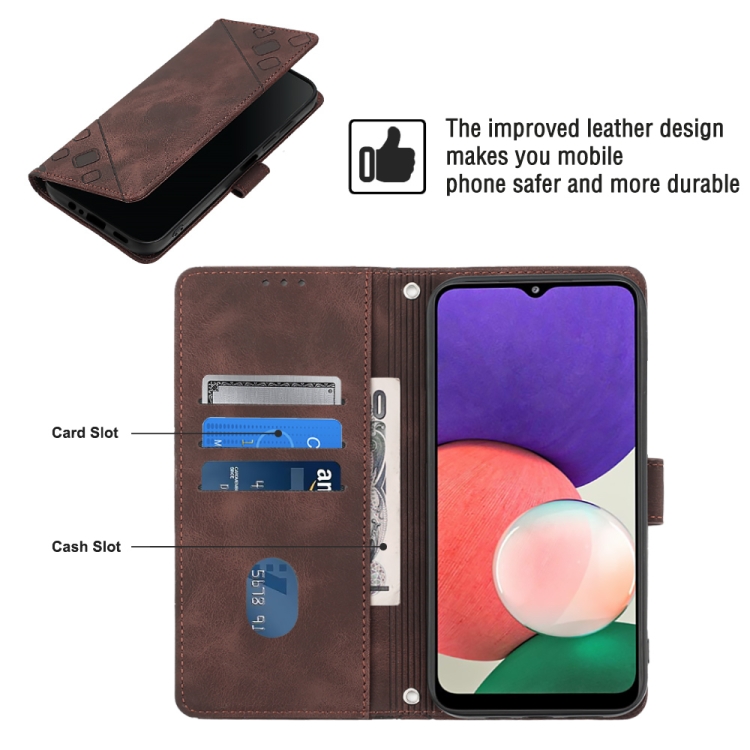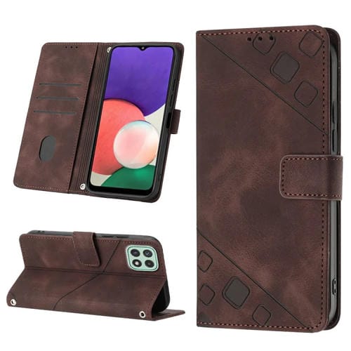 Estuche para Teléfono Samsung Galaxy A22 5G Cuero En Relieve con Tacto de Piel (Marrón)