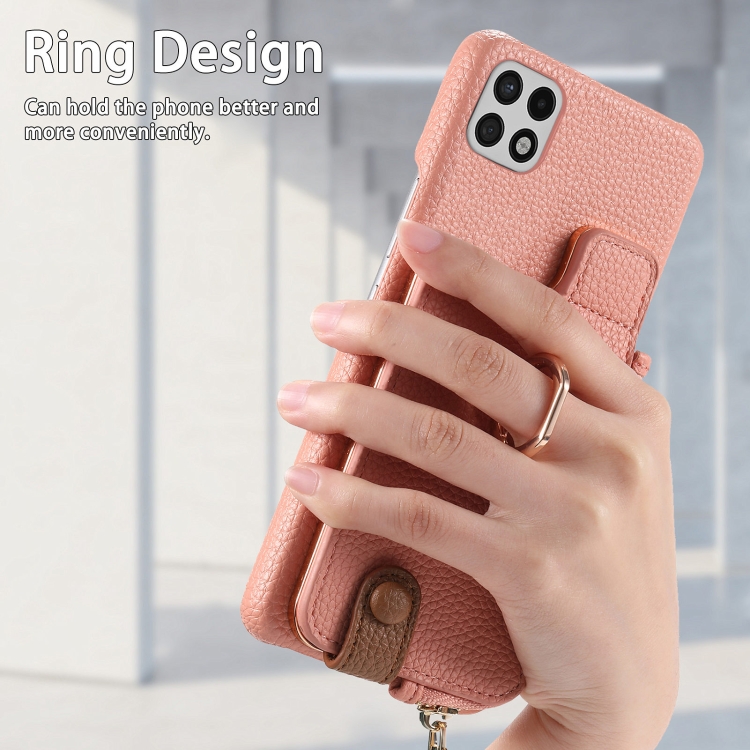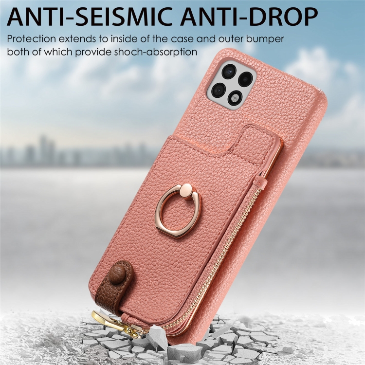 Funda para teléfono Samsung Galaxy A22 5G Litchi Leather Oil Edge Ring Zipper Wallet Back (Rosa)