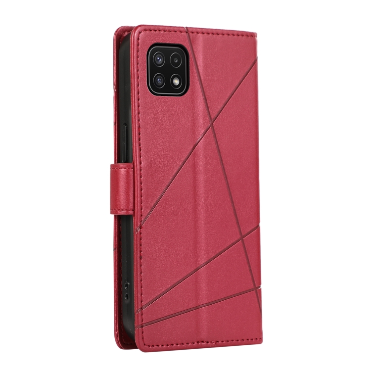Funda para Teléfono Samsung Galaxy A22 5G Pu Cuero Genuino Línea En Relieve (Rojo)