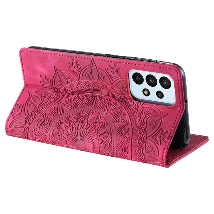 Estuche para Teléfono Samsung Galaxy A23 4G F23 5G Cuero Magnético Relieve Tótem (Rojo)