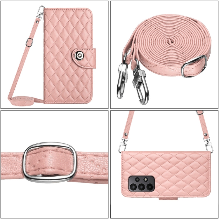 Funda para Teléfono Samsung Galaxy A23 4G F23 5G Cuero Textura Rómbica Cordón Largo (Rosa Coral)