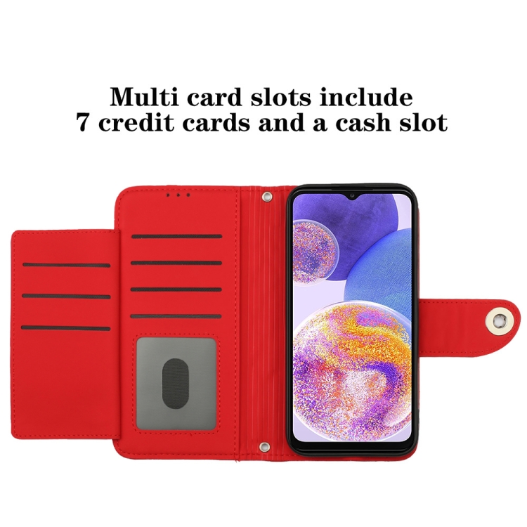 Funda para Teléfono Samsung Galaxy A23 4G F23 5G Tapa Cuero Textura Rómbica Cordón (Rojo)