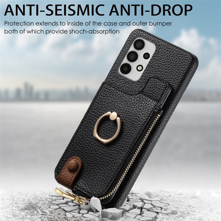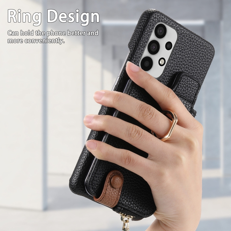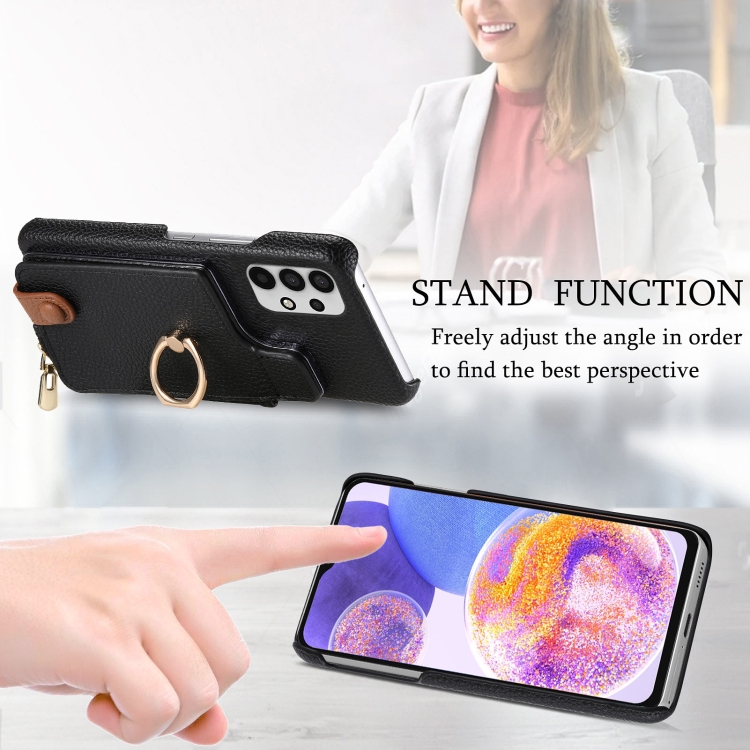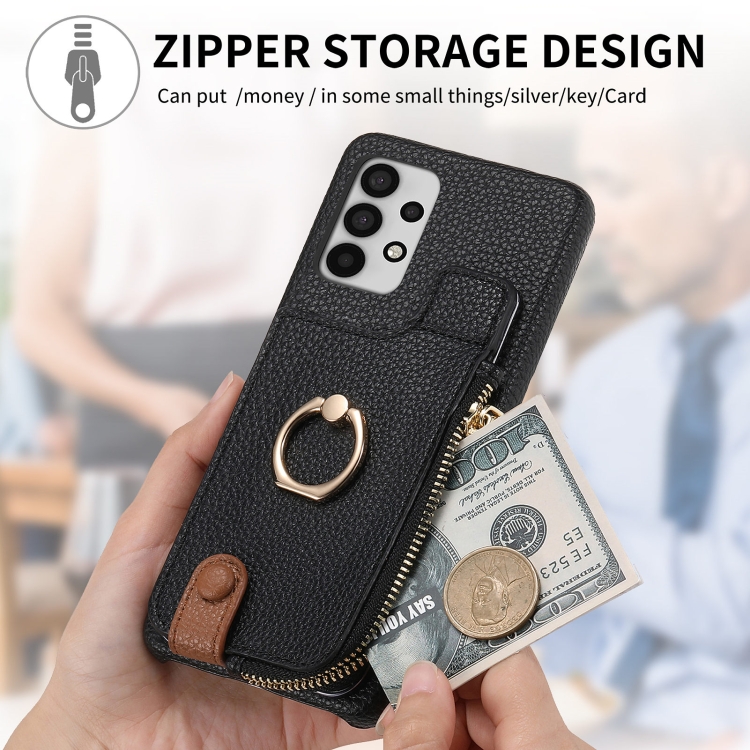 Funda para Teléfono Samsung Galaxy A23 Litchi Leather Oil Edge Ring Zipper Wallet Back (Negro)