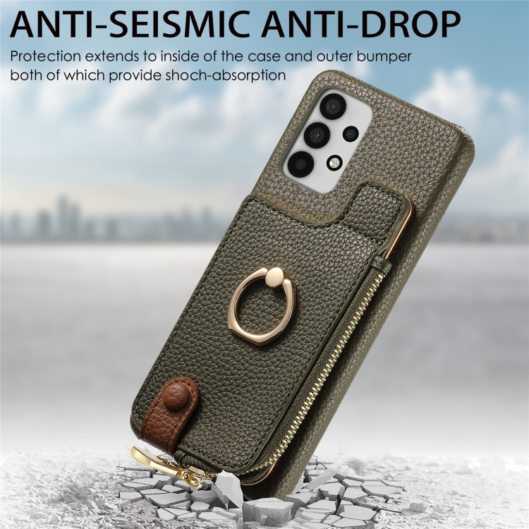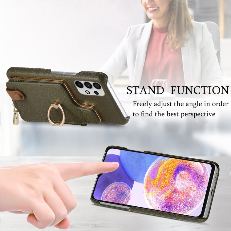 Funda para Teléfono Samsung Galaxy A23 Litchi Leather Oil Edge Ring Zipper Wallet Back (Verde)