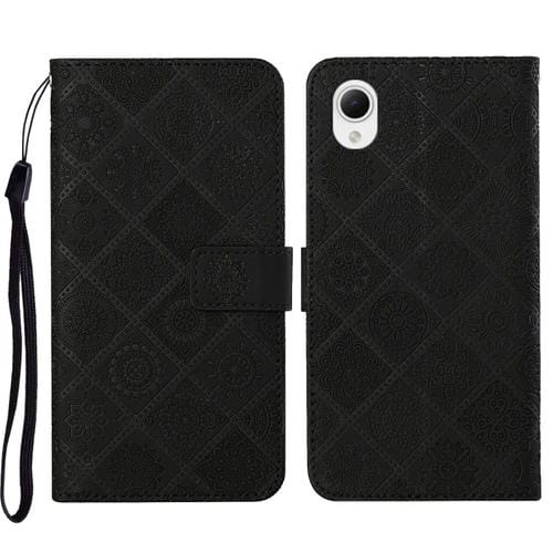 Estuche para Teléfono Samsung Galaxy A23E Cuero Patrón en Relieve Estilo Étnico (Negro)