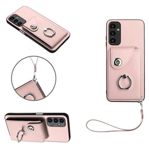 Funda para Teléfono Samsung Galaxy A24 4G de Pu con Soporte para Anillo y Bolsa para Tarjeta con Cordón (Rosa)